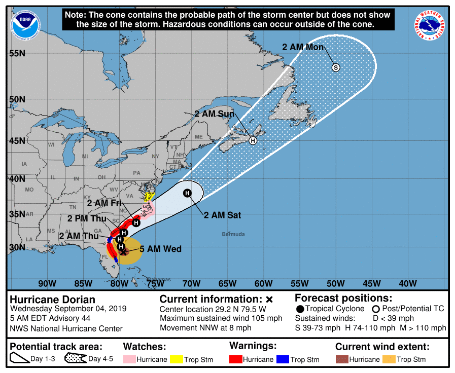 Wednesday, September 4, 2019 – 5:00 AM – Hurricane Dorian Update